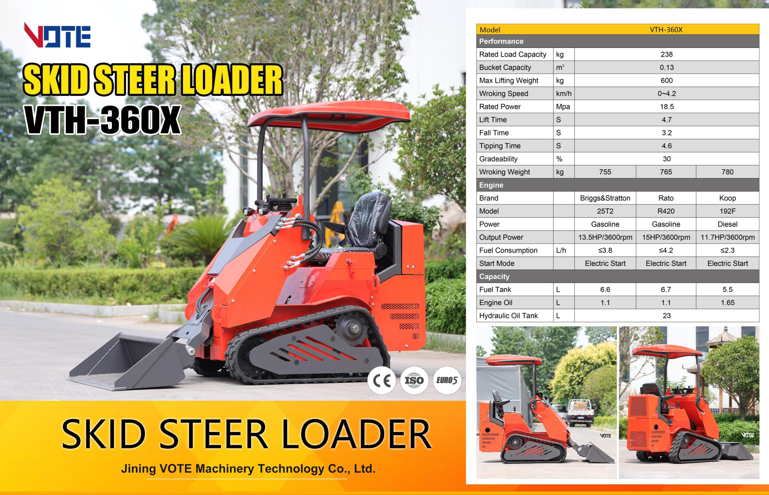 La VTH-360X es una skid steer loader compacta diseñada para ofrecer un mayor nivel de capacidad de carga y versatilidad, manteniendo la agilidad y facilidad de uso propias de este tipo de maquinaria.